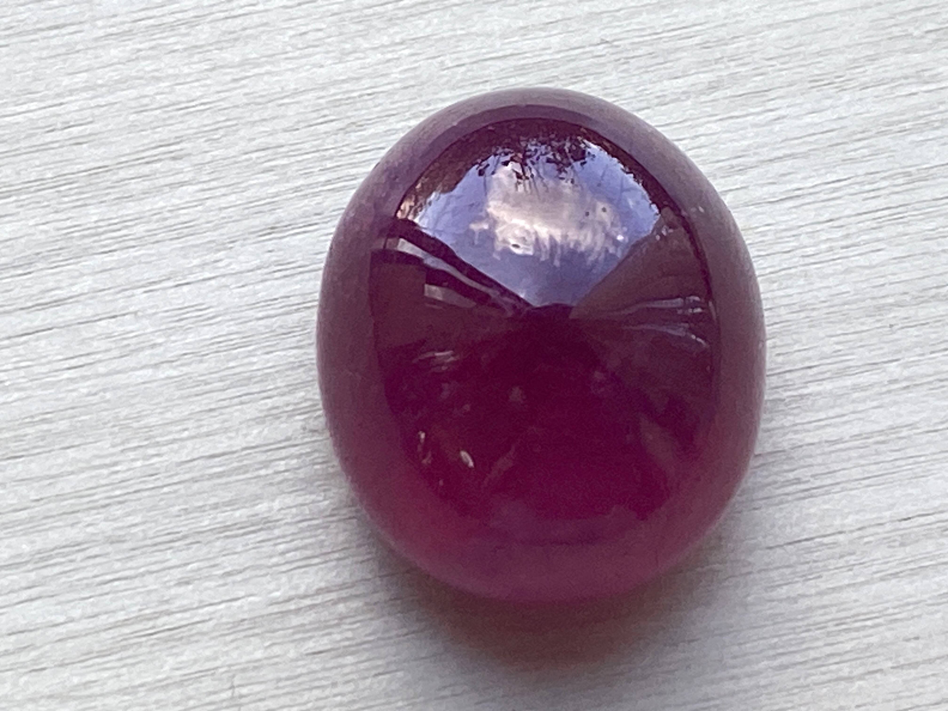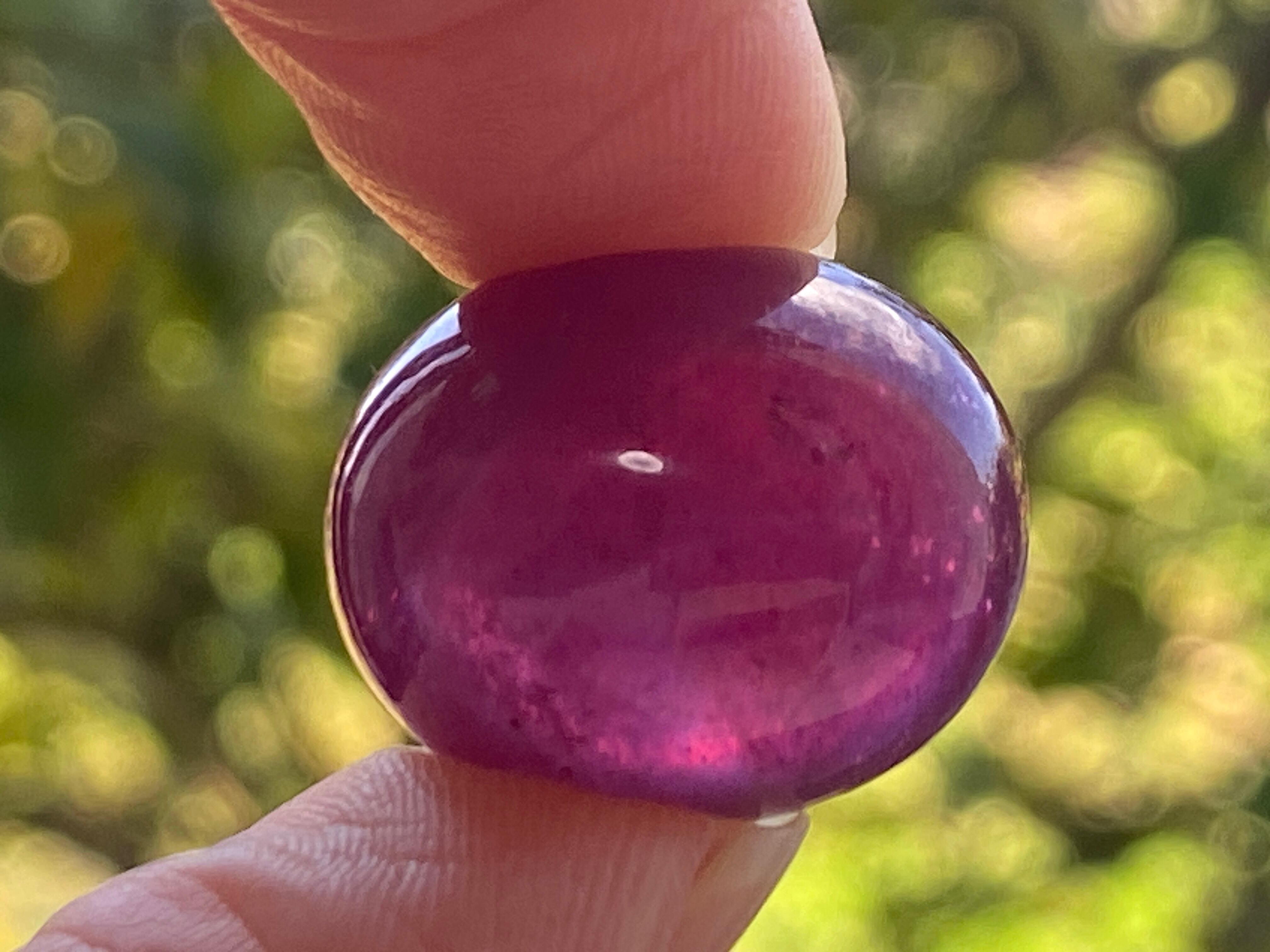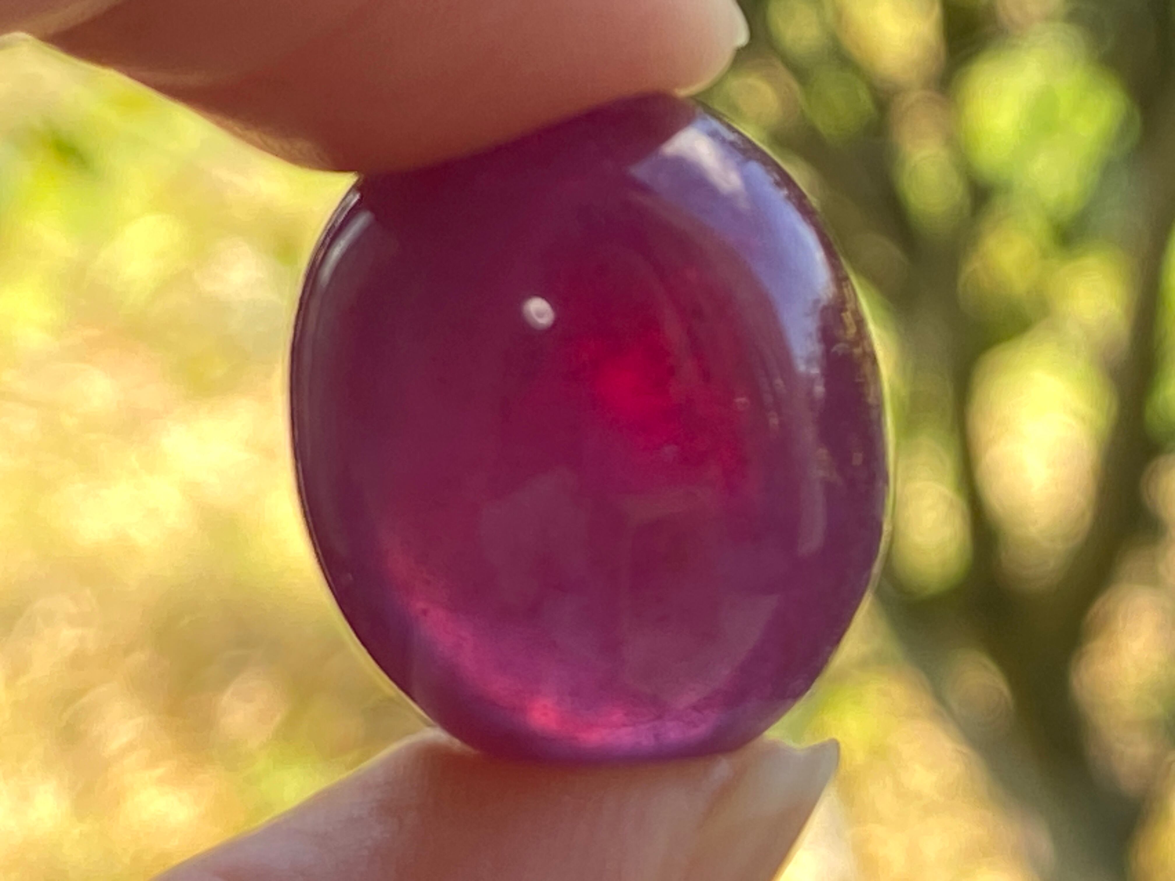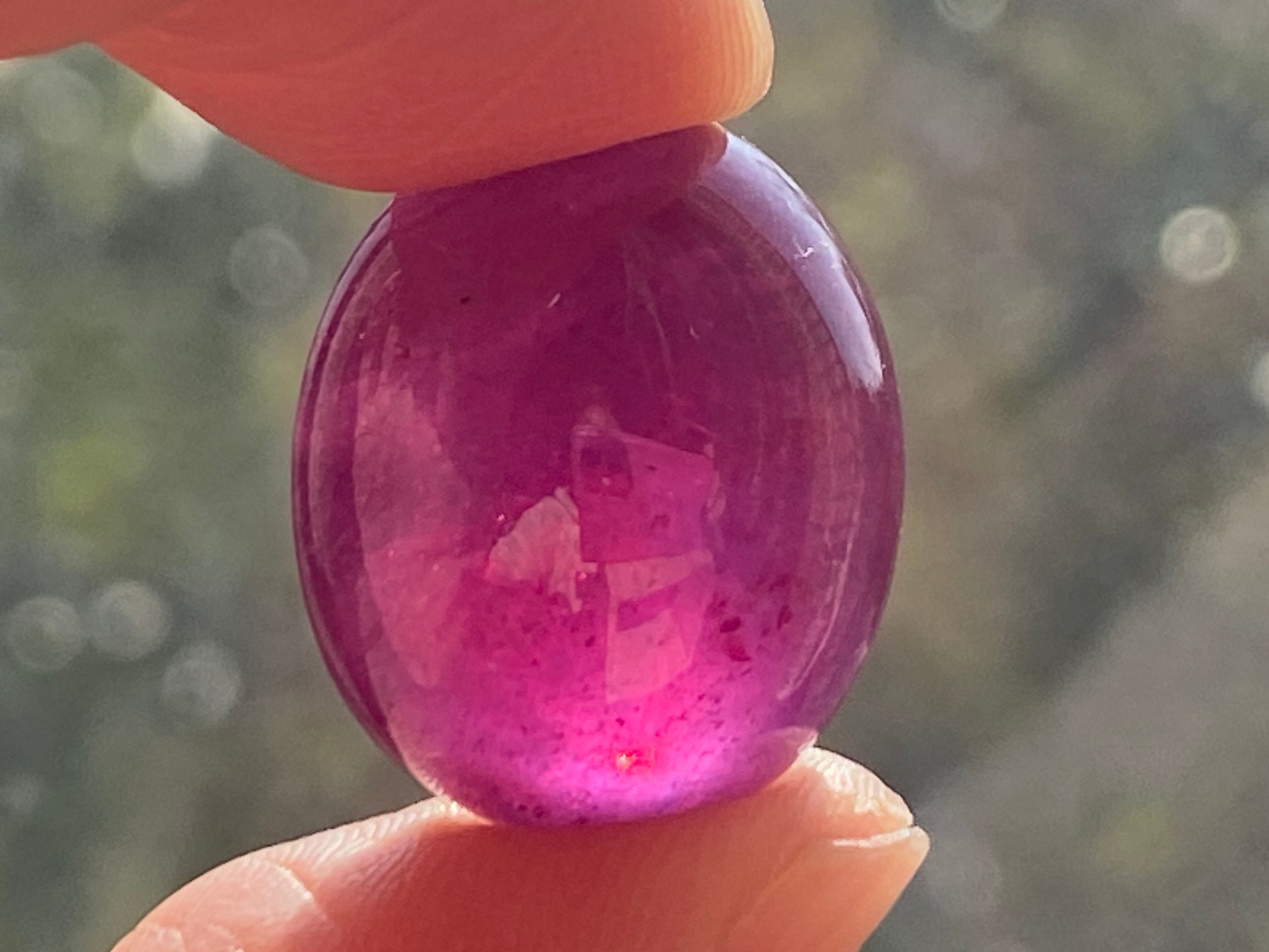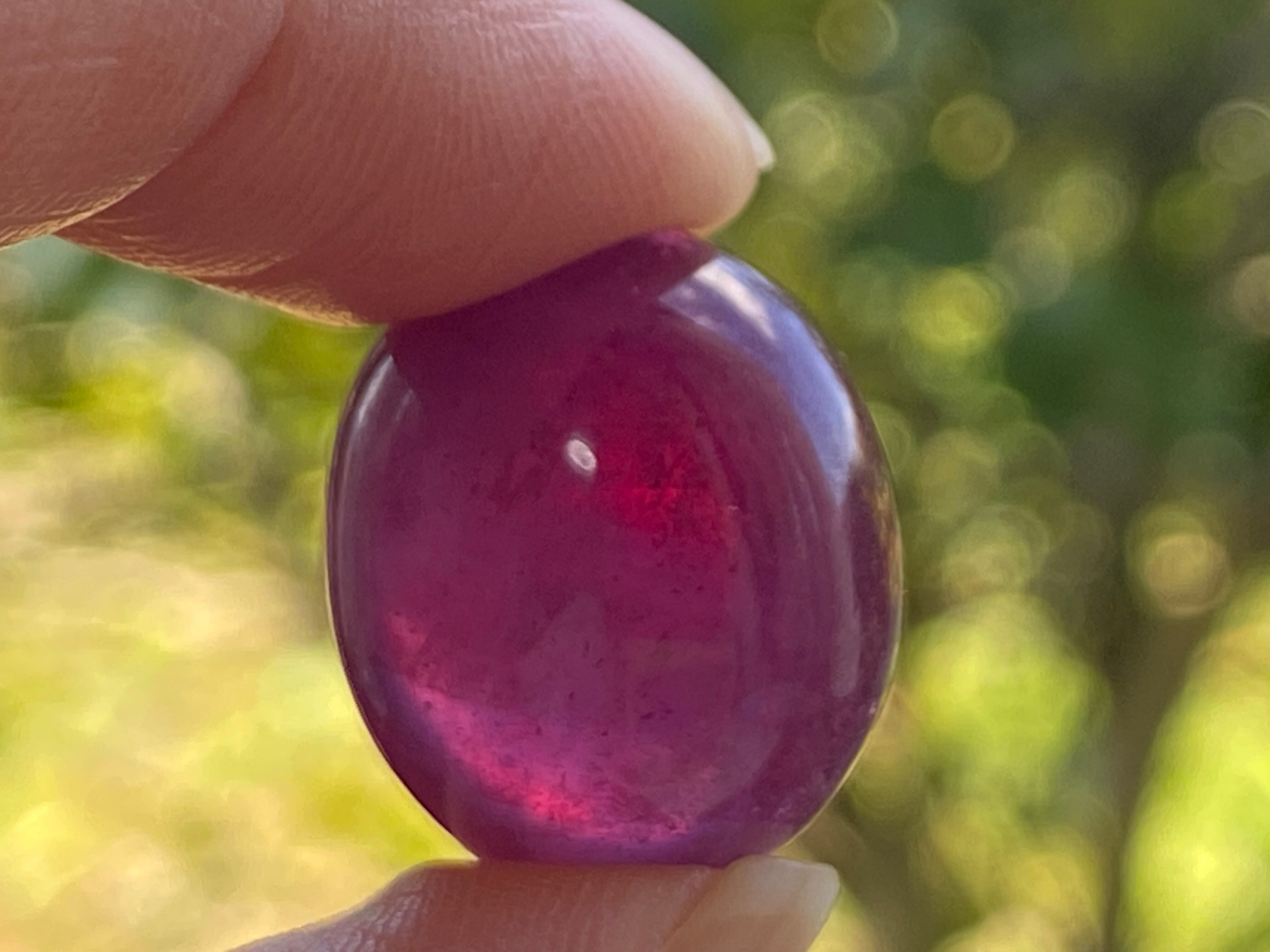 濃いピンクレッドが美しく、ぷっくり透明感のあるルビーのルースです。