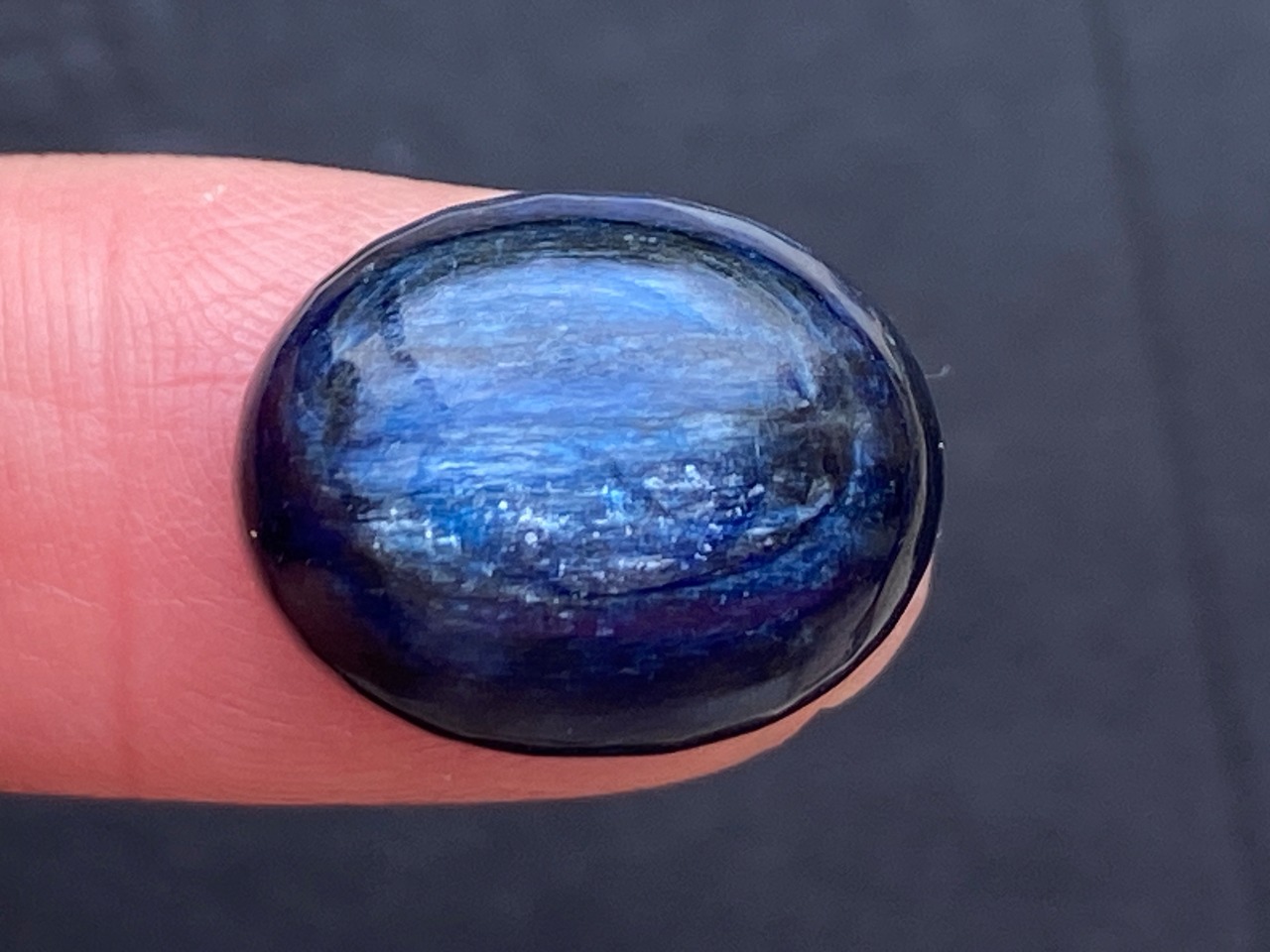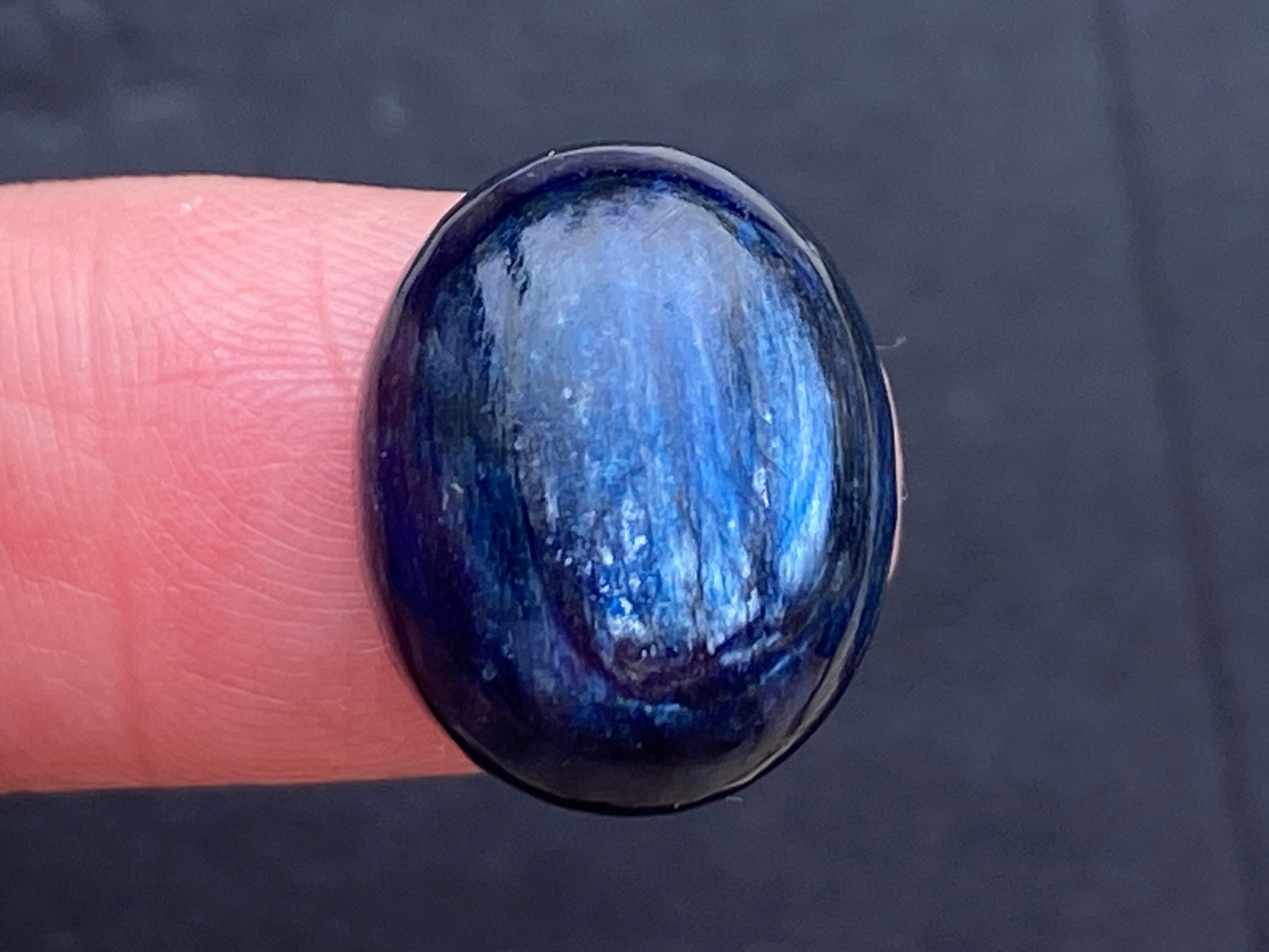 深い青色が濃厚で、艶のある美しいカイヤナイトのルースです。