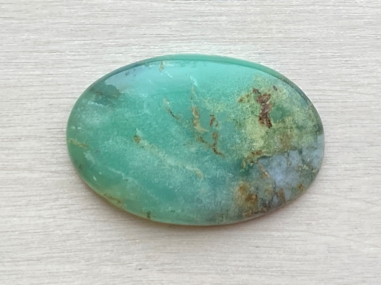 母岩交じりの模様が個性的なクリソプレーズのルースです。